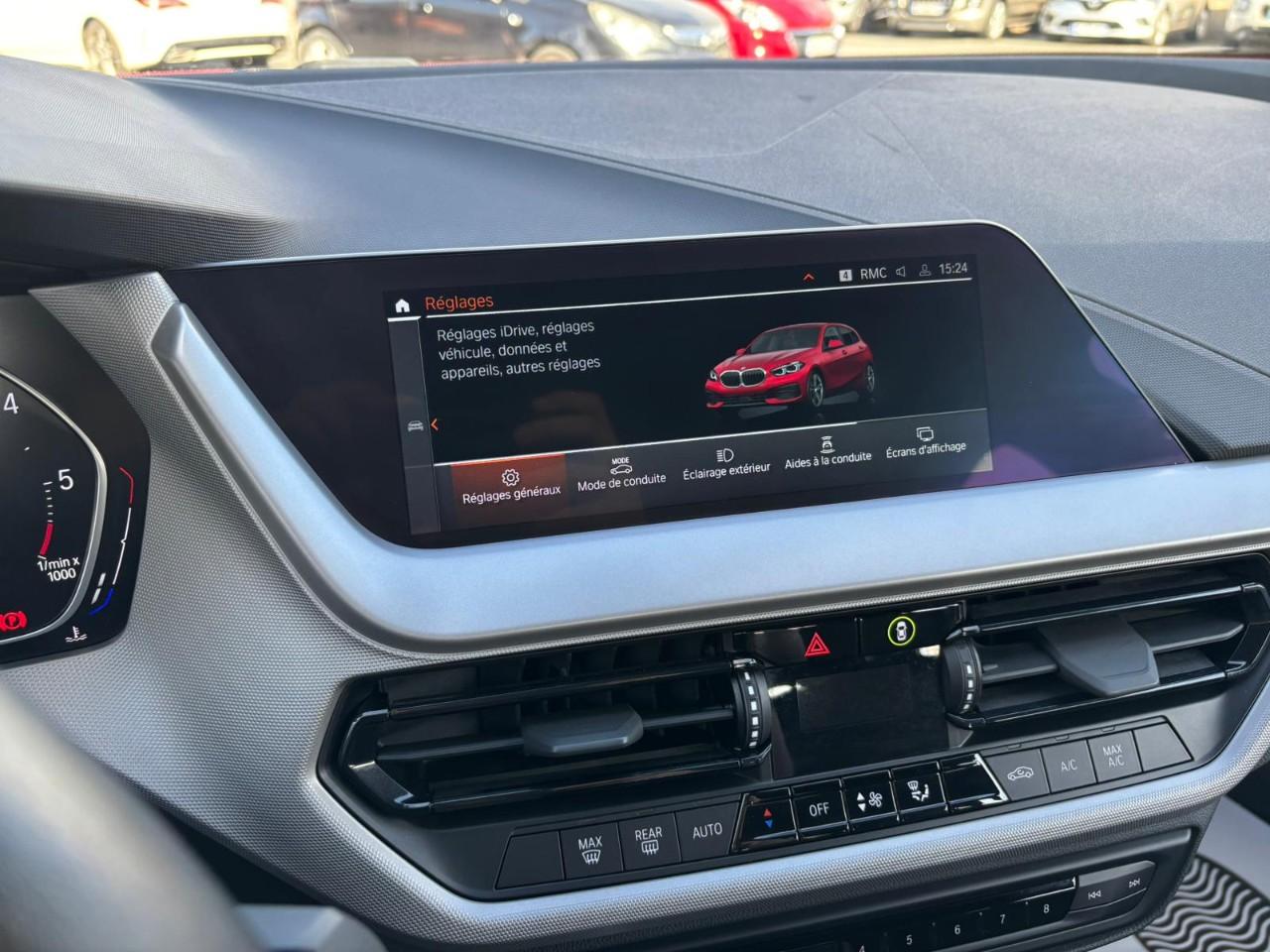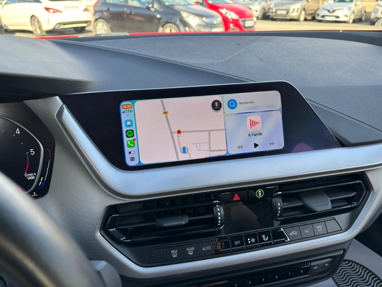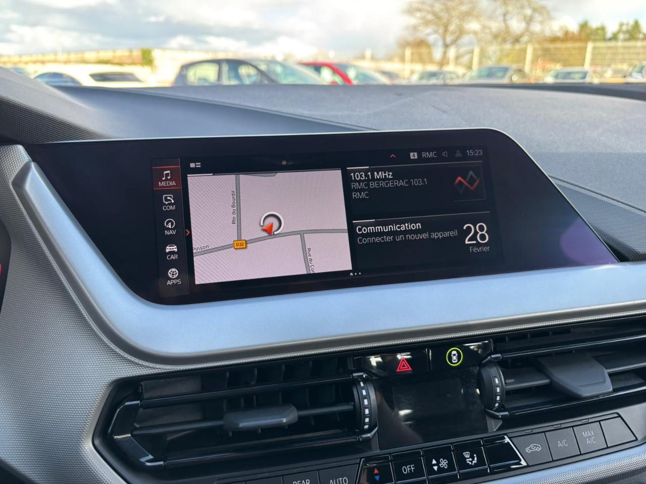 Cette Série 1 est dotée du BMW Live Cockpit Navigation Plus et de la suite Pack Connected Pro, de projecteurs Full LED, de jantes alliage 17" (style 548) en option, d’un volant sport cuir, du Park Assist, d’un régulateur de vitesse avec fonction freinage, de la climatisation automatique 1 zone, d’un système radio DAB+, d’une roue de secours galette et d’un ciel de pavillon M anthracite. L’équipement de sécurité comprend airbags frontaux, latéraux et rideaux, ABS avec assistant de freinage, DSC/ DTC et mesure individuelle de pression des pneumatiques. La voiture dispose également de clés radiocommandées avec mémorisation « Personal Profile » et de services connectés BMW TeleServices.