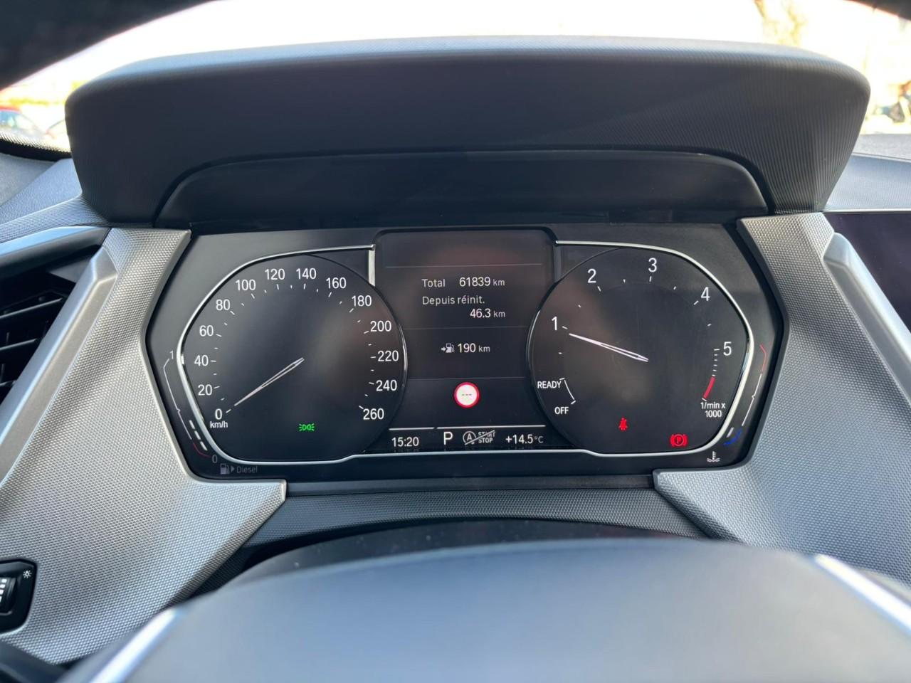 Cette Série 1, première immatriculation le 11-02-2022, affiche 61 827 km au compteur. Elle est animée par le 3 cylindres diesel 1.5 l de 116 ch associé à la boîte automatique double embrayage DKG7 à 7 rapports.