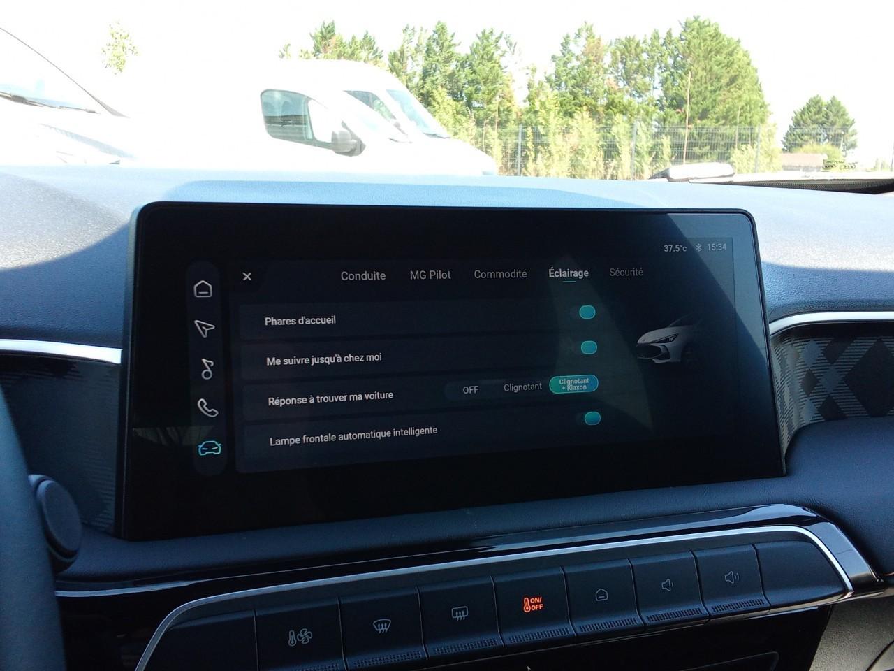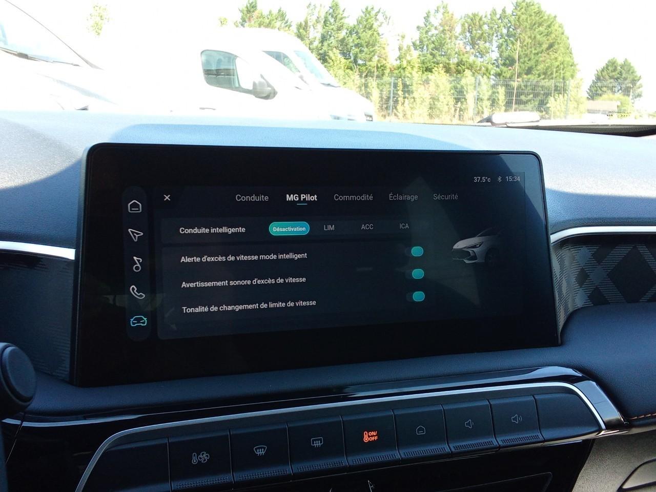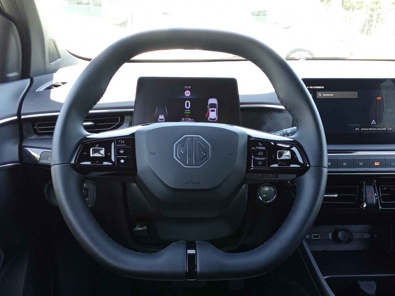 - Finition Luxury très équipée : aides à la conduite avancées (caméra 360°, régulateur adaptatif ACC, détection angle mort), confort (sièges avant chauffants, volant chauffant) et connectivité (écran tactile 10,25", Apple CarPlay/Android Auto, navigation et MG iSMART Lite).