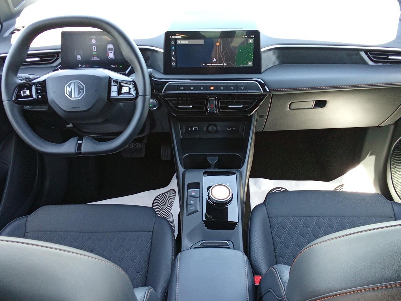 La voiture dispose d’un écran central tactile 10,25", caméra 360°, régulateur de vitesse adaptatif (ACC), assistance au maintien de voie, surveillance des angles morts, freins automatiques d’urgence, climatisation automatique avec filtre PM2.5, compatibilité Apple CarPlay/Android Auto, navigation, réception DAB+, jantes alliage 16", sièges avant chauffants, volant cuir/microfibre chauffant, frein de stationnement électronique (EPB), start/stop et système de connectivité MG iSMART Lite.