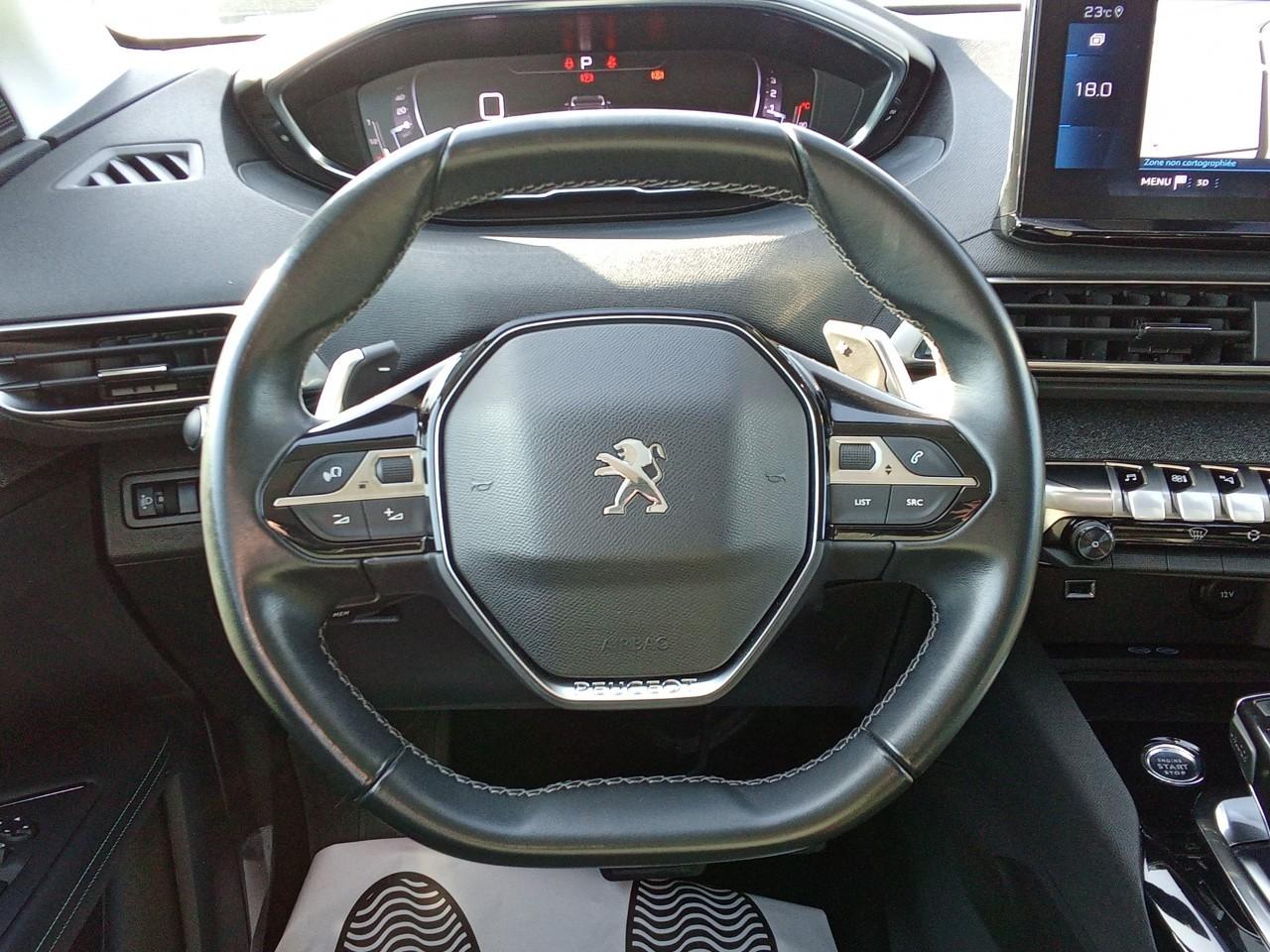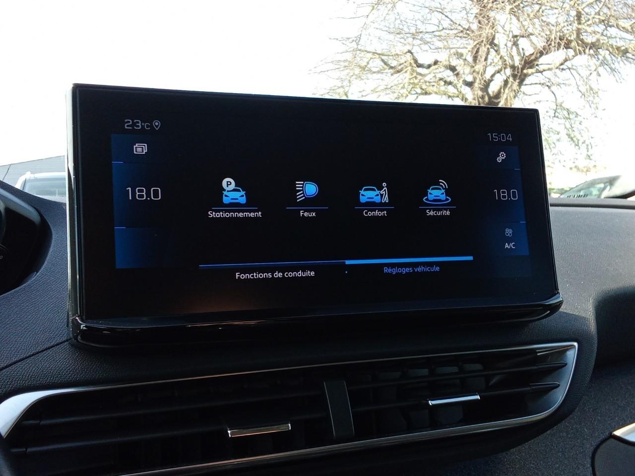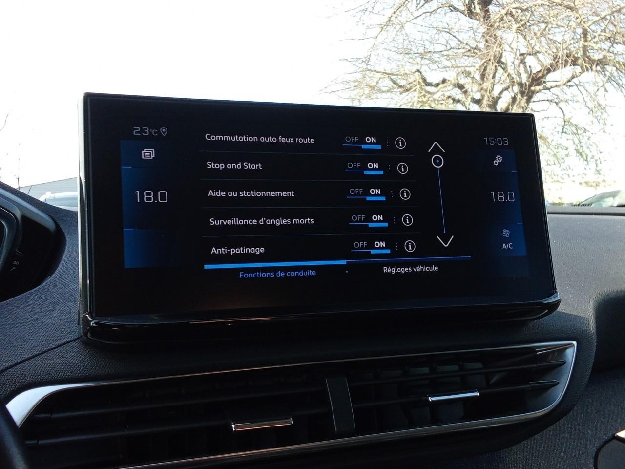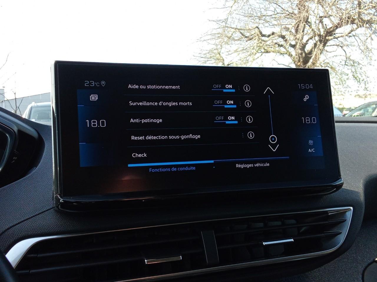 "Toggle Switches" chromés (touches "piano" d'activation des fonctions de l'écran tactile)6 Airbags (frontaux, latéraux AV et rideaux)Accès et démarrage mains libresAccoudoir central AV à ouverture papillon, avec compartiment de rangement éclairé et réfrigérableAide graphique et sonore au stationnement ARAir conditionné automatique bi-zone avec aérateurs aux places ARAirbags frontaux conducteur et passager adaptatifs (passager neutralisable par clé), airbags latéraux conducteur et passager AV.airbags rideaux de tête aux places AV/ARAppuis-tête à sécurité optimisée réglables en hauteur sur les sièges conducteur et passager AV ainsi que sur les places latérales ARAvertisseur de temps de conduiteBandeau de pare-chocs AR chroméBanquette AR rabattable 1/3 - 2/3 (avec modularité "Magic Flat" et commandes dans le coffre) avec accoudoir et trappe à skisBarres de toit longitudinales profilée en AluminiumBoîte à gants floquée et éclairéeCalandre á damiers chromésCeintures de sécurité 3 points à enrouleur (x3) au 2ème rang, avec prétensionneurs et limiteurs d'effort aux places latéralesCeintures de sécurité AV 3 points à enrouleur, réglables en hauteur avec prétensionneurs et limiteurs d'effortCommande de verrouillage à distance (2 plips)Contrôle dynamique de stabilité CDS avec antipatinage électronique ASRCoques de rétroviseurs couleur carrosserieDécors de planche de bord et panneaux de portes en maille "Brumeo"Décors intérieurs (baguettes de planche de bord et panneaux de portes, enjoliveur de console) chromésDétection de sous-gonflage indirecteDirection assistée électrique, colonne de direction réglable en hauteur et profondeur (mécanique)Drive Mode : Choix de 2 modes de conduite (Eco ou Sport)Eclairage intérieur à LEDEnjoliveur d'arc de pavillon en inoxEnjoliveur en inox sur les protecteurs de bas de portesEssuie-vitre AR avec enclenchement automatique en marche AREssuie-vitre AV avec système de lavage "Magic Wash"Fixations ISOFIX (passager AV et aux places latérales AR)Frein de stationnement électrique avec aide au démarrage en penteGarnissage TEP avec Tissu Colyn MistralIndicateur de rapport conseilléInserts d'ailes AV chromésJantes alliage 18" "Detroit" bi-ton diamantées Gris StormKit de dépannage de pneumatique : compresseur 12 volts, flacon de produit de colmatage, anneau de remorquage, deux cales de roue, manivelle de frein de stationnement électriqueLève-vitres AV/AR électriques et séquentiels avec antipincementLunette AR chauffante avec antennes sérigraphiéesMiroirs de courtoisie éclairésMirror Screen (compatible Mirrorlink, Apple CarPlay, Android Auto)Pack City 1Pack Eclairage d'ambiancePack Safety PlusPack VisibilitéPassages de roues rapportés noirsPeugeot Connect: Ecran tactile capacitif 10'' HD,navigation 3D connectée avec reconnaissance vocale aux services de Navigation connectée TomTom, SOS & Assistance, TeleservicesPlafonniers AV et AR avec spot de lecturePlancher de coffre 2 positionsPoches/filets aumonières au dos des sièges AVPrise 12 V (x3 : zone connectique, AR de console et coffre)Prise USB (dans la zone connectique)Projecteurs "Peugeot LED Technology" avec feux diurnes à LED sous projecteursRégulateur / Limiteur de vitesseRétroviseurs extérieurs dégivrants à réglage électriqueRétroviseurs extérieurs rabattables électriquement avec éclairage d'accueil à LEDRadio avec fonction DAB,bi-tuner compatible MP3 et connectivité Bluetooth (audio streaming, kit mains libres), avec commandes au volant, 6 HP, écran tactile capacitif 10" HDReconnaissance étendue des panneaux (Stop, Sens interdit) et préconisation des panneaux de vitesseSécurité enfants électrique des vitres ARSabots de pare-chocs AV gris métalliséSellerie TEP & Tissu 'Colyn'Siège conducteur à réglage lombaire manuelSiège passager AV mécanique avec mise en tabletteSièges AV mécaniques à réglage manuel en hauteurSystème d'antiblocage des roues ABS avec répartiteur électronique de freinage REF et assistance au freinage d’urgence AFUTeinte métallisée Bleu CelebesVerrouillage automatique de tous les ouvrants en roulantVitres latérales AR et lunette AR surteintéesVolant Cuir fleur