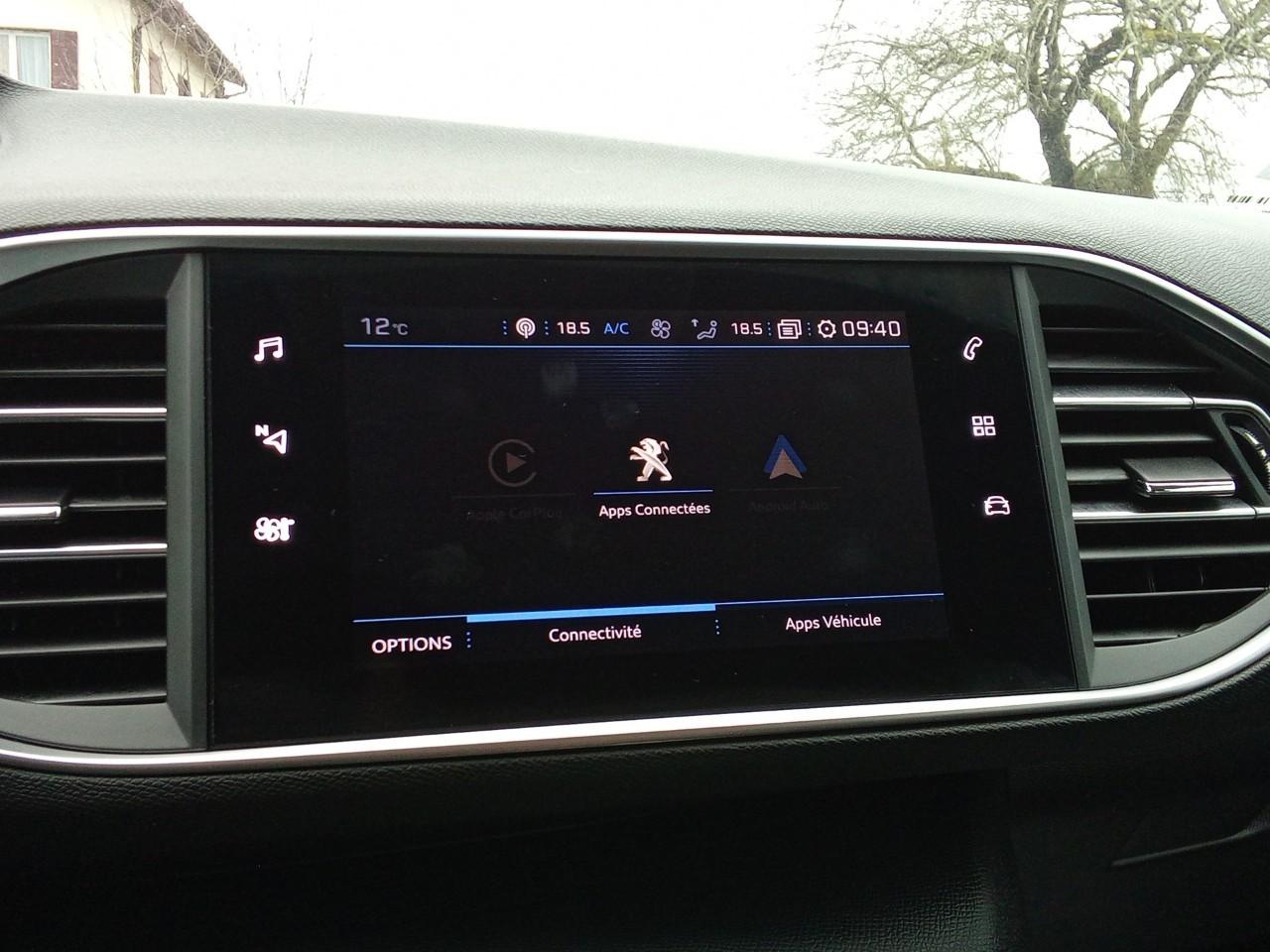 Mirror Screen (CarPlay/Android Auto), radio DAB, climatisation automatique bi‑zone, jantes alliage 16" « Quartz », feux arrière à LED, Pack Safety, Pack Visibilité et Pack Look, Peugeot Connect, aide au stationnement avant/arrière (graphique et sonore), banquette Magic Flat (2/3‑1/3), fixations ISOFIX, lève‑vitres électriques séquentiels anti‑pincement, volant cuir sport avec commandes intégrées, régulateur/limiteur, ABS + ESP, airbag complet, kit de dépannage pneumatique.