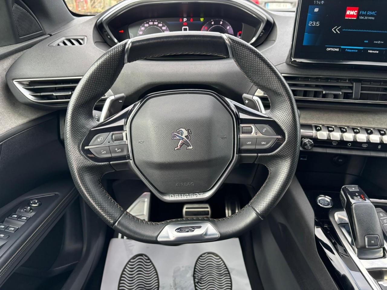 "Toggle Switches" chromés (touches "piano" d'activation des fonctions de l'écran tactile)2 sièges escamotables et extractibles pour les passagers - 3ème rang3 sièges indépendants,coulissants,inclinables et escamotables dans le plancher - 2ème rangAccès et démarrage mains libresAccoudoir central AV à ouverture papillon, avec compartiment de rangement éclairé et réfrigérableAide graphique et sonore au stationnement ARAir conditionné automatique bi-zone avec aérateurs aux places ARAirbags frontaux conducteur et passager (passager neutralisable), latéraux AV et rideauxAirbags latéraux rang 1 et rideaux rangs 1, 2 et 3Appuis-tête à sécurité optimisée réglables en hauteur sur les sièges conducteur et passager AV ainsi que sur les places latérales ARAvertisseur de temps de conduiteBarres de toit longitudinales profilée en AluminiumBoîte à gants floquée et éclairéeCalandre GT avec design évolutif chroméCanules d'echappement de style chroméesCeintures de sécurité 3 points à enrouleur (x2) au 3ème rangCeintures de sécurité AR 3 points à enrouleur (x3) avec prétensionneurs et limiteurs d'effort aux places latéralesCeintures de sécurité AV 3 points à enrouleur, réglables en hauteur avec prétensionneurs et limiteurs d'effortCommande de verrouillage à distance (2 plips)Commandes de lève-vitres avec inserts chromésCommandes intérieures de portes chroméesContrôle dynamique de stabilité CDS avec antipatinage électronique ASRCoques de rétroviseurs extérieurs Noir Perla NeraDécors de planche de bord et panneaux de portes Alcantara Gris GrevalDécors intérieurs (baguettes de planche de bord et panneaux de portes, enjoliveur de console) chromésDétection de sous-gonflage indirecteDirection assistée électrique, colonne de direction réglable en hauteur et profondeur (mécanique)Drive Mode : Choix de 2 modes de conduite (Eco ou Sport)Driver Sport Pack Sonorité du moteur amplifiée et plus sportive, pédale d'accélarateur plus réactive, direction assistée plus sportive, passage de vitesses sport (pour les motorisaions à boîte automatique). Possibilité d'affichaEclairage intérieur LED: plafonnier tactile 3 spots + 2 LEDs d'ambiance, 2 liseuses AR, pare-soleil, boîte à gants, accoudoir central, zone connectique, caves à pied, zone coffre (x2)Enjoliveur d'arc de pavillon en inoxEnjoliveur de seuil d'entrée de coffre chroméEnjoliveur en inox sur les protecteurs de bas de portesEssuie-vitre AR avec enclenchement automatique en marche AREssuie-vitre AV avec système de lavage "Magic Wash"Fixation ISOFIX sur siège passager AVFixations ISOFIX aux places latérales de rang 2Frein de stationnement électrique avec aide au démarrage en penteHabitacle et ciel de pavillon Noir MistralIndicateur de rapport conseilléInserts d'ailes AV chromésJantes alliage 18" "Detroit" bi-ton diamantées Noir OnyxJonc de vitres en inoxKit de dépannage de pneumatique : compresseur 12 volts, flacon de produit de colmatage, anneau de remorquage, deux cales de roue, manivelle de frein de stationnement électriqueLève-vitres AV/AR électriques et séquentiels avec antipincementLunette AR chauffante avec antennes sérigraphiéesMiroirs de courtoisie éclairésMirror Screen (compatible Mirrorlink, Apple CarPlay, Android Auto)Pédalier et repose-pied conducteur aluminiumPack City 1Pack Drive Assist PlusPack Eclairage d'ambiancePack EnfantsPack Safety PlusPack VisibilitéPassages de roues rapportés noirsPeinture métallisée Metallic CopperPeugeot Connect: Ecran tactile capacitif 10'' HD,navigation 3D connectée avec reconnaissance vocale aux services de Navigation connectée TomTom, SOS & Assistance, TeleservicesPlafonnier avec liseuses : rang 1, rang 2, rang 3Planche de bord surpiquéePoches/filets aumonières au dos des sièges AVPrise USB (dans la zone connectique)Prises 12 V (x 3 : zone connectique, AR de console et coffre)Prises USB de charge (x2) au 2ème rangProjecteurs "Peugeot Full LED Technology" avec correction automatique de site, fonction Eclairage Virage Statique,"Foggy Mode" et feux diurnes à LED prolongés dans les projecteursRégulateur / Limiteur de vitesseRétroviseur intérieur photosensible frameless - sans cadreRétroviseurs extérieurs électriques, dégivrants et rabattables électriquement avec éclairage d'accueil à LEDRadio avec fonction DAB,bi-tuner compatible MP3 et connectivité Bluetooth (audio streaming, kit mains libres), avec commandes au volant, 6 HP, écran tactile capacitif 10" HDReconnaissance étendue des panneaux (Stop, Sens interdit) et préconisation des panneaux de vitesseRideaux pare-soleil en rang 2Sécurité enfants électrique des vitres ARSabots de pare-chocs AV gris métalliséSellerie TEP & Alcantara MistralSeuils de portes AV en InoxSiège conducteur mécanique avec réglage lombaireSiège passager AV avec mise en tabletteSièges AV mécaniques à réglage manuel en hauteurSupercondamnationSurtapis AV/ARSystème d'antiblocage des roues ABS avec répartiteur électronique de freinage REF et assistance au freinage d’urgence AFUTablettes aviation aux dos des sièges du rang 1Toit "Black Diamond" (toit Noir Perla Nera)Trappes de rangement (x2) aux pieds des passagers du 2ème rangVerrouillage automatique de tous les ouvrants en roulantVitres latérales AR et lunette AR surteintéesVolant cuir fleur perforé avec bagues chromées et badge GT