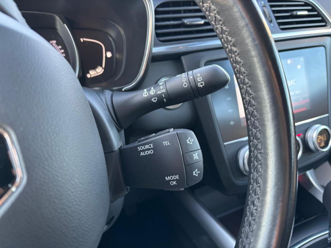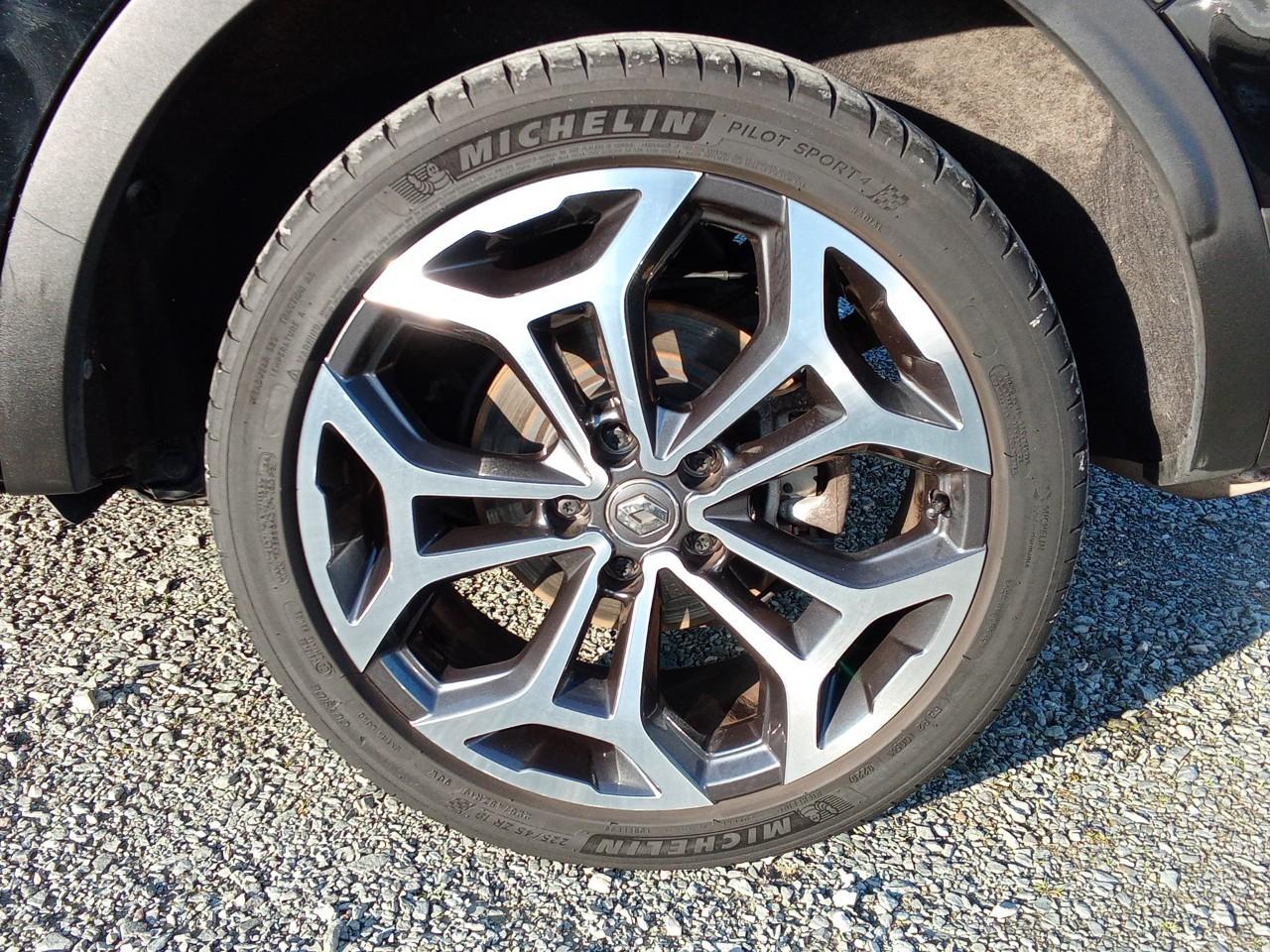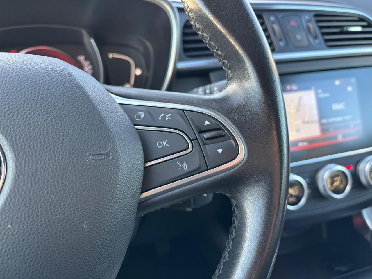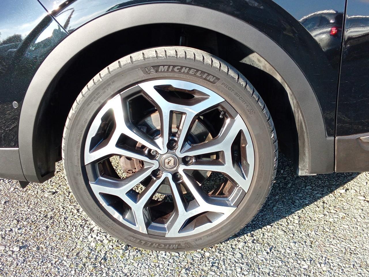 Équipements principaux : sellerie cuir/TEP, R-Link 2 avec navigation et écran tactile 7", compatibilité Android Auto / Apple CarPlay, climatisation automatique bi‑zone, régulateur/limiteur de vitesse, volant cuir, jantes alliage 19" Egeus, projecteurs AV full LED Pure Vision, caméra de recul, aides au parking AV/AR/latéral, freins assistés (ABS + aide au freinage d'urgence), contrôle électronique de stabilité (ESC/ASR), surveillance de la pression des pneus, barres de toit, vitres et lunette arrière surteintées.
